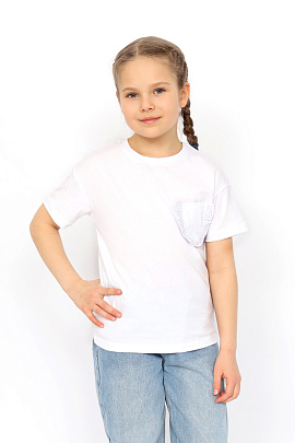 Футболка для девочки с трендовым колледж-принтом, с блестящим эффектом и контрастными бейками по горловине и рукавам. Модель сделана из 100%-хлопкового трикотажа. Материал приятно прилегает к телу, не сковывает движения и позволяет коже дышать.