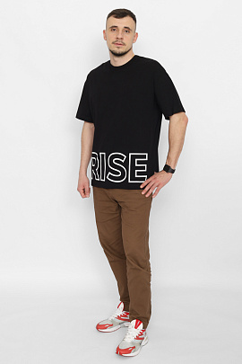 Футболка прямого силуэта длиной по линию бедер. Короткий рукав. Круглая горловина обработана узкой притачной обтачкой из рибаны с эластаном. Полочка декорирована принтом "единственный экземпляр".