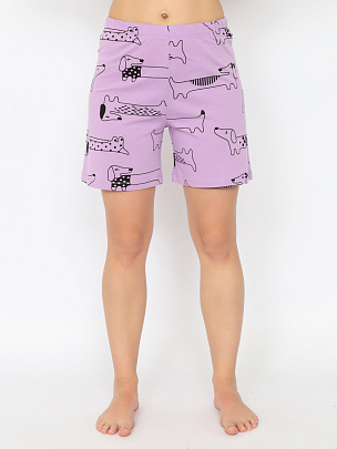 Пижама комбинированная из футболки и шорт. Футболка оверсайз с коротким рукавом выполнена из гладкокрашеного полотна. Горловина обработана притачной бейкой из рибаны с лайкрой. Перед оформлен принтом. Шорты свободного покроя длиной до середины бедра выполнены из набивного полотна дополнительного цвета. Цельнокроенный пояс обработан плоским швом вподгибку с одновременным прокладыванием резинки.