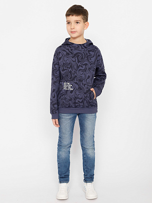 Джемпер для девочки с модным принтом на спинке и нашивкой на рукаве (надпись: "Улыбнись. Настоящий друг всегда в твоем сердце"). Крой оверсайз с заниженной линией плеча, не сковывает движения, позволяя ребенку быть активным. Модель дополнена круглым вырезом горловины и длинными рукавами. Воротник и манжеты выполнены из полотна с эластаном. В боковых швах по низу изделия разрезы.