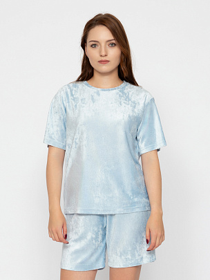 Комплект женский (футболка, шорты) голубой
