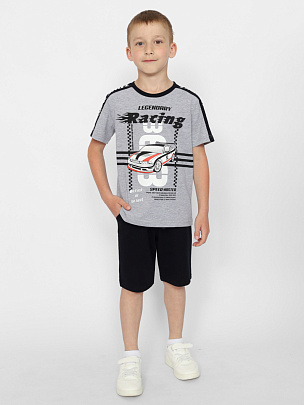 Комплект для мальчика (футболка, шорты) светло-серый меланж
