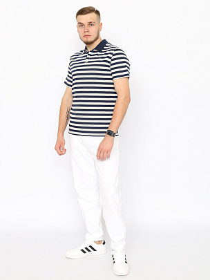 Рубашка-поло мужская прямого силуэта с коротким рукавом. Вязаный воротник, застежка на брендированные пуговицы. Декорирована силиконовой нашивкой по низу планки.