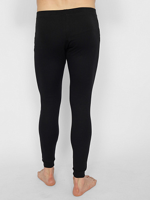 Кальсоны из интерлока в рубчик, без боковых швов. Спереди в шве обработан разрез. Пояс притачной, выполнен из рибаны с эластаном, с предварительно вставленной резиной. Нижние срезы обработаны притачными манжетами из рибаны с эластаном.