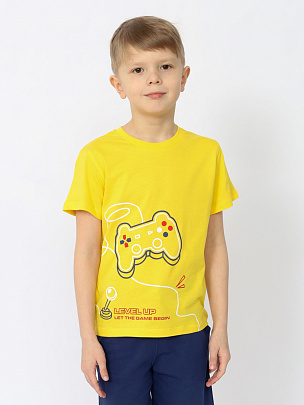 Футболка с коротким рукавом. Горловина круглая, обработана узким воротником из полотна с эластаном. Перед оформлен шрифтовым принтом.