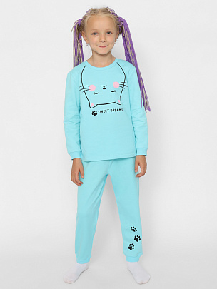 Пижама для девочки (футболка, шорты) светло-бирюзовая