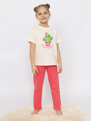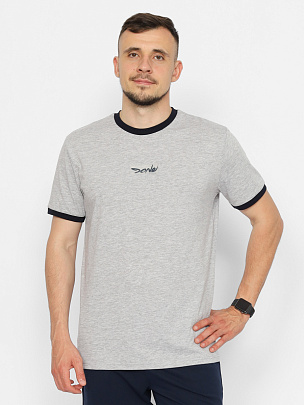 Футболка oversize со спущенным плечом, с коротким рукавом. Горловина круглая, обработана притачной бейкой из рибаны с лакрой. Плечевые швы смещены на перед и отстрочены. По переду вдоль правого бокового шва - текстовый принт.